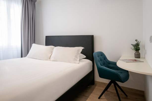 Una camera con letto matrimoniale (160x200cm) + 1 letto singolo (90x200 cm)